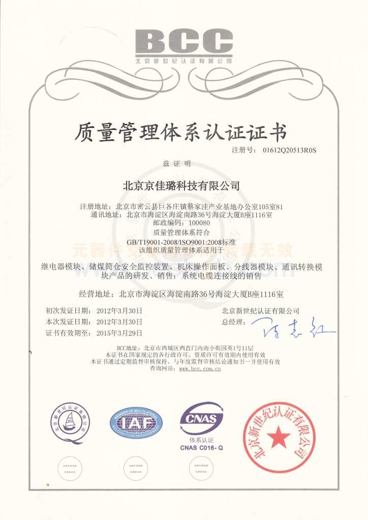 质量认证证书: ISO9000认证